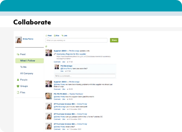 Sage Intacct Collaborate connects finance and business teams, streamlines communication, and embeds conversations in context, driving faster decisions, stronger alignment, and greater efficiency.